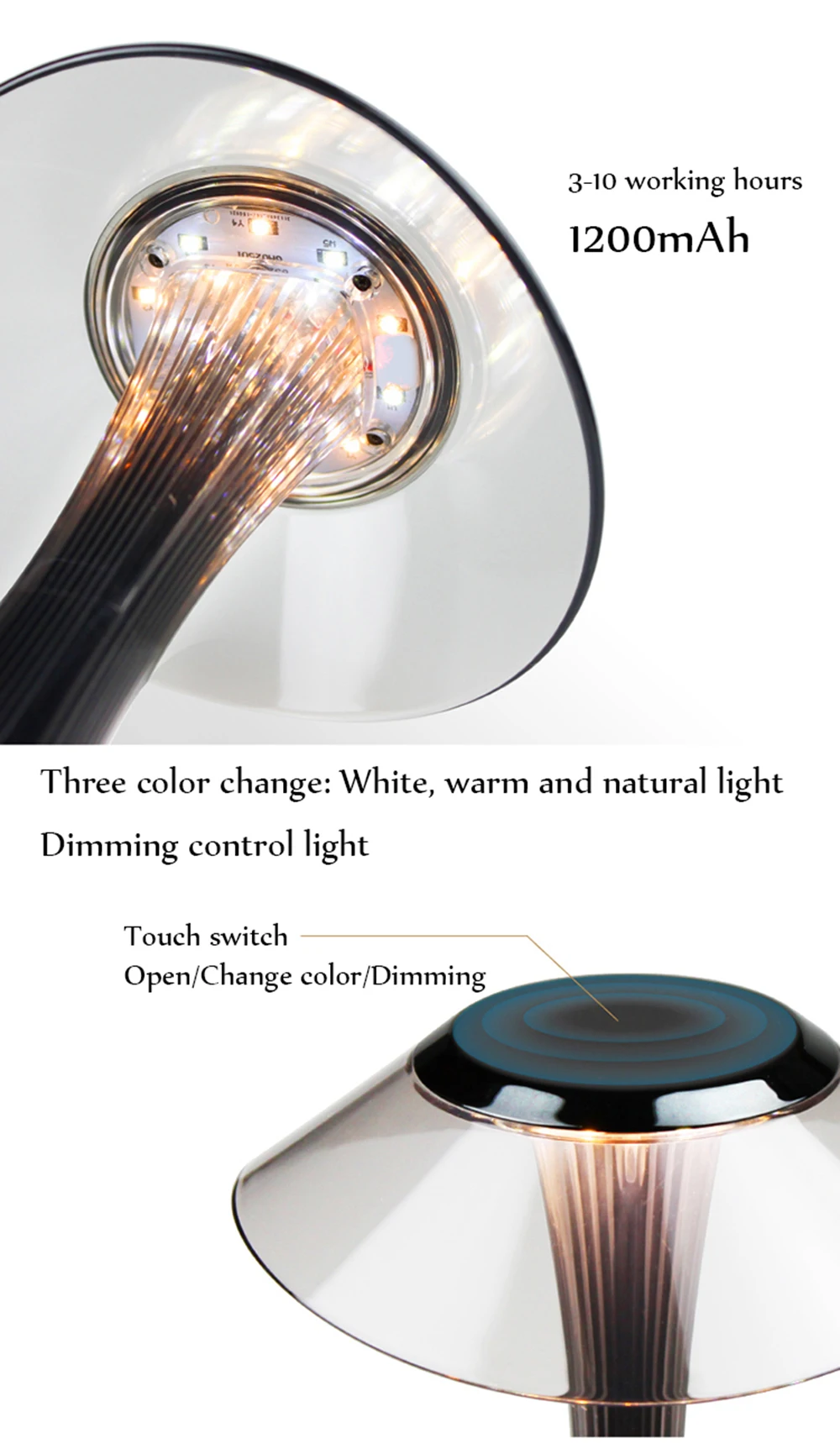 Вы можете легко Переключить светильник: холодный белый/теплый белый/естественный светильник. И Длительное нажатие для регулировки яркости этого настольного светильник.