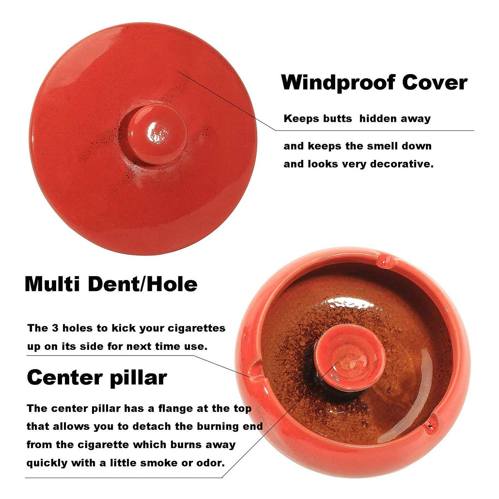 Уникальный дизайн: пепельница с крышкой может закрыть свой запах для не курильщиков, когда пепельница закрыта, не будет выделен запах снаружи. Защитите здоровье вашей семьи и помогите удалить дым из рук. Край пепельницы имеет углубления, так что Копченый продукт можно удобно хранить при необходимости. Очень подходит для повседневного использования и даже на открытом воздухе.