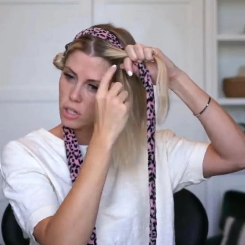 Наденьте утюжок для завивки на голову, как головную повязку, вы можете обернуть его сверху или зафиксировать лентой для волос, такой как хвостик, затем оберните сухие или слегка влажные волосы на другой стороне ленты для завивки и используйте нижнюю часть ленты для волос. Обязательно затяните и начните с верхней части головы. Волосы, которые могут быть слегка влажными в течение дня, будут оставаться в течение часа или двух, или волосы, которые слегка влажные или сухие на ночь, останутся в течение одного-двух часов.