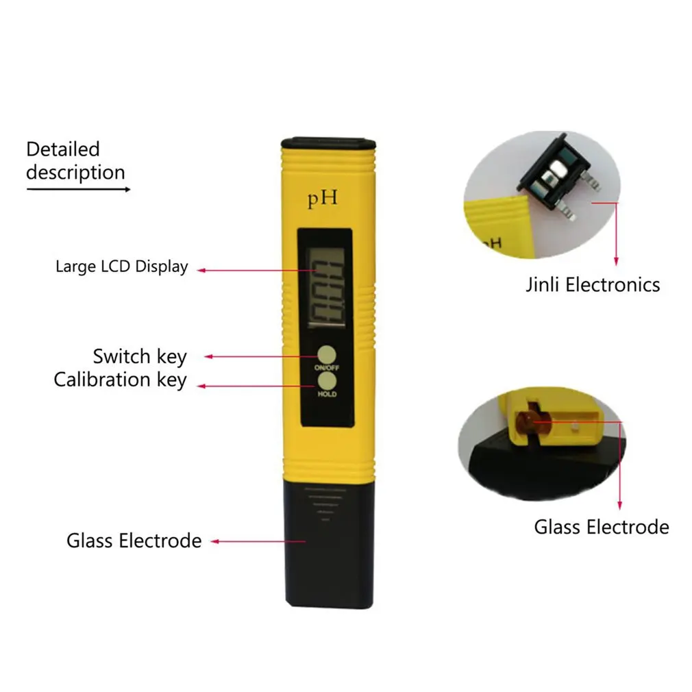 Портативный измеритель PH-идеальный тестовый набор для домашнего, промышленного и лабораторного использования. Широко используется для тестирования идеального использования воды, бассейнов, аквариумов, горячих источников, гидропоники, косметики, продуктов питания, вина и пива. Также он имеет лучшую цену, надежное качество, все это делает его вашим первым испытанием кислоты и щелочи.