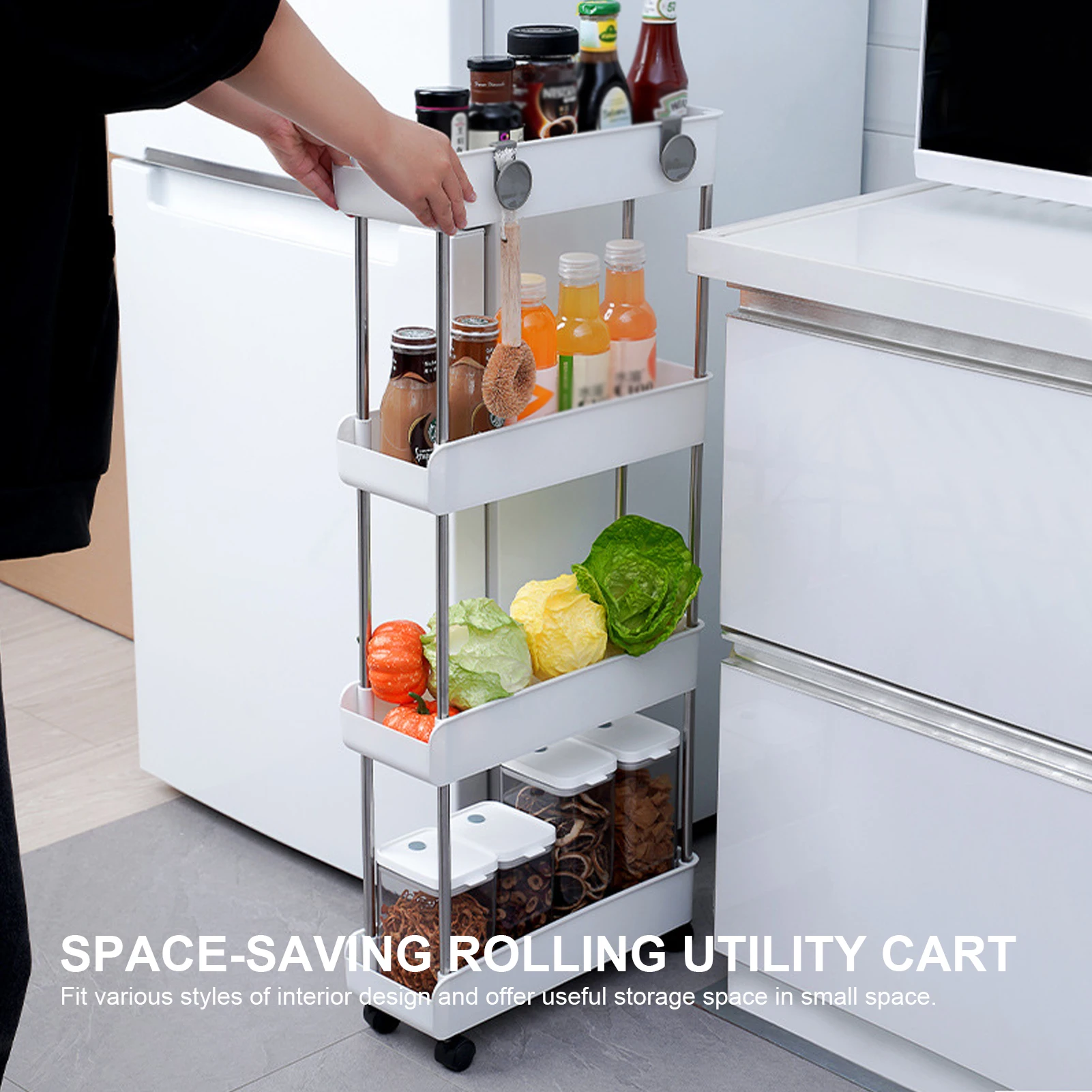 [Экономия пространства] роликовая тележка для хранения экономит наземное пространство для максимально оптимального использования пространства и помогает организовать ваши вещи и избавиться от беспорядка в небольшом пространстве.