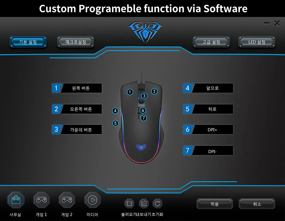 AULA F806 представляет собой для долговечной игры Мышь, которая позволяет непрерывно использовать изделие до 2400 Точек на дюйм (изменяются пользователем 800/1200/1600/2400 Точек на дюйм) Высокоточный Сенсор обеспечивает точное определение цели, в то время как микропереключатели обеспечивают долговечность, высокая прочность и высокая чувствительность во время также отлично подходит для игр MOBA/ RTS. Y