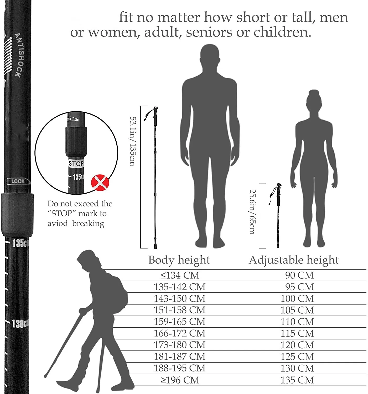 Треккинговые палки предназначены для удовлетворения всех ваших потребностей в походах. От скалолазания в ледовые Горы до неторопливой городской прогулки, включая 4 сезонные аксессуары и наконечник из карбида вольфрама, вы покрыли все зоны и условия. Легко прикрепить корзины и наконечники для дополнительной стабильности на грязи, воде, снегу или асфальте. Палки складываются в компактный размер и поставляются с удобным чехлом для переноски, чтобы поместиться в рюкзак или сумку для переноски во время путешествия.