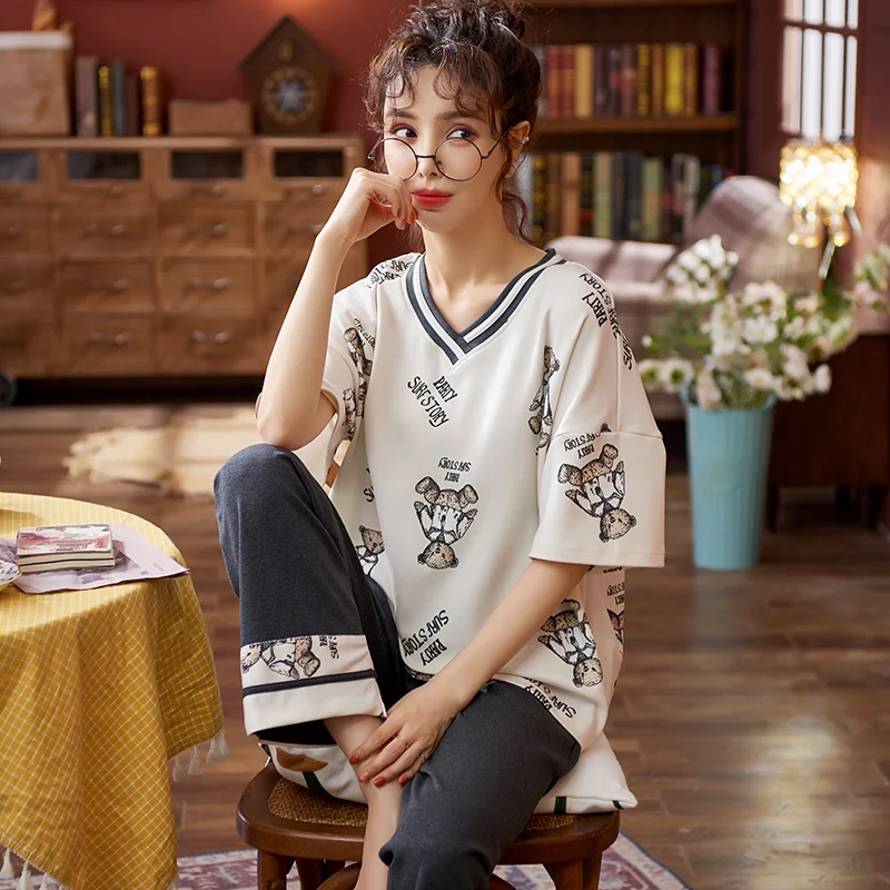 Отзывы о Мягкая удобная Пижама пижама большого размера Женская Хлопковая комплект с