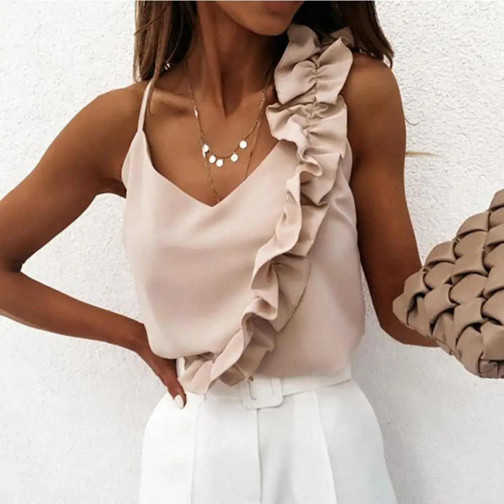 Отзывы о Майка женская летняя однотонная с оборками V-образным вырезом и открытой спиной -