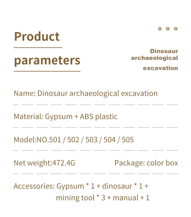 Гипс * 1 + динозавр * 1 + инструмент для майнинга * 3 + Инструкция + 1
