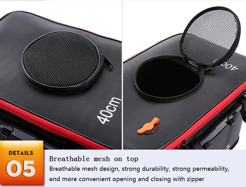 Хранение воды для кемпинга, пеших прогулок, а также для живой приманки, многофункциональные инструменты. Боковой карман для кислородного насоса, который сделает ваши рыбки дышащими, а сетчатая крышка делает более удобными, когда вы вставляете рыбы внутрь и наружу.