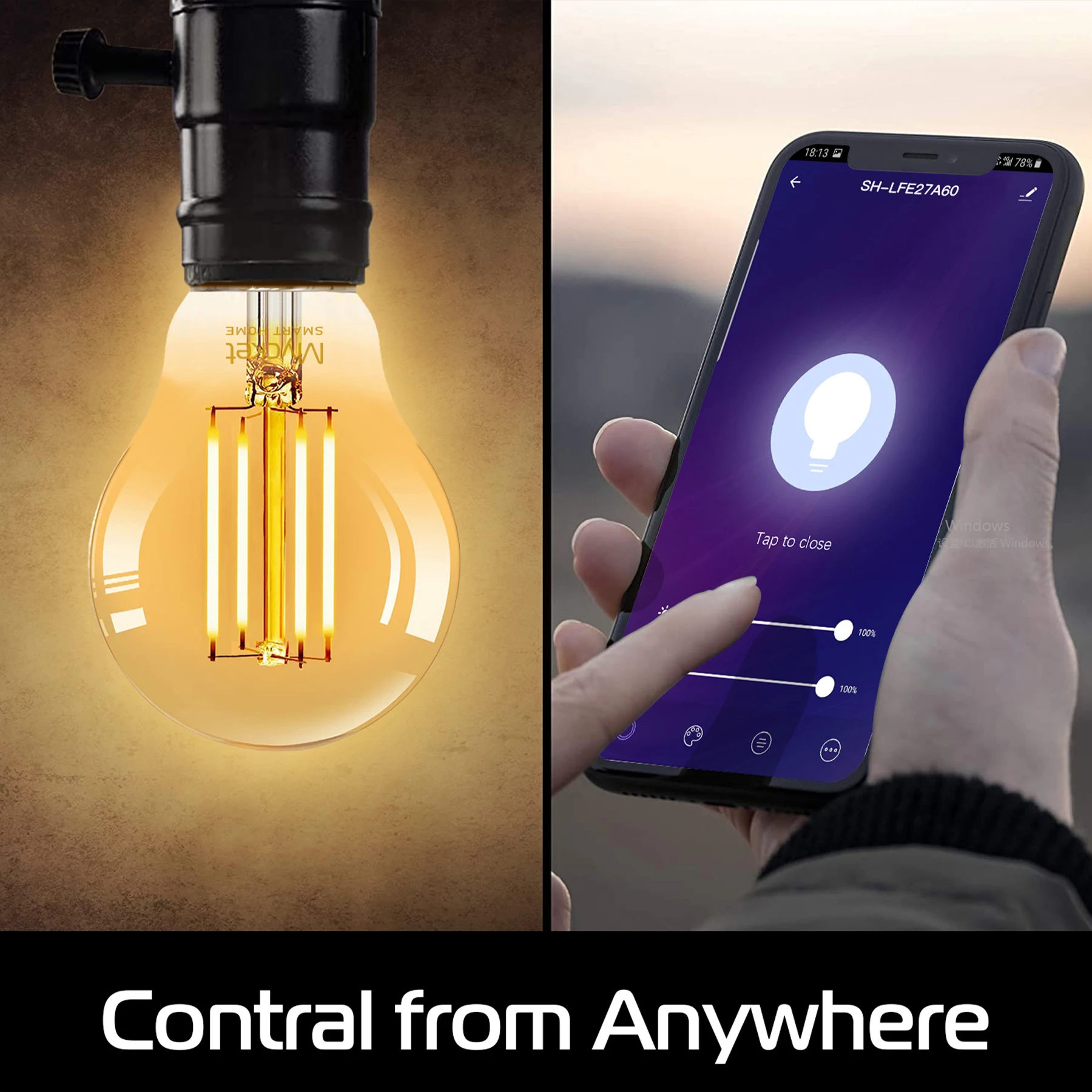 ●Настройка сцены: С помощью приложения SMART LIFE легко Создайте сцену триггера, которая контролирует многие устройства одним нажатием или создает автоматическую сцену, которая активируется только при выполнении условий набора: включите умную винтажную лампу Эдисона до 75%, когда это {Dusk}.