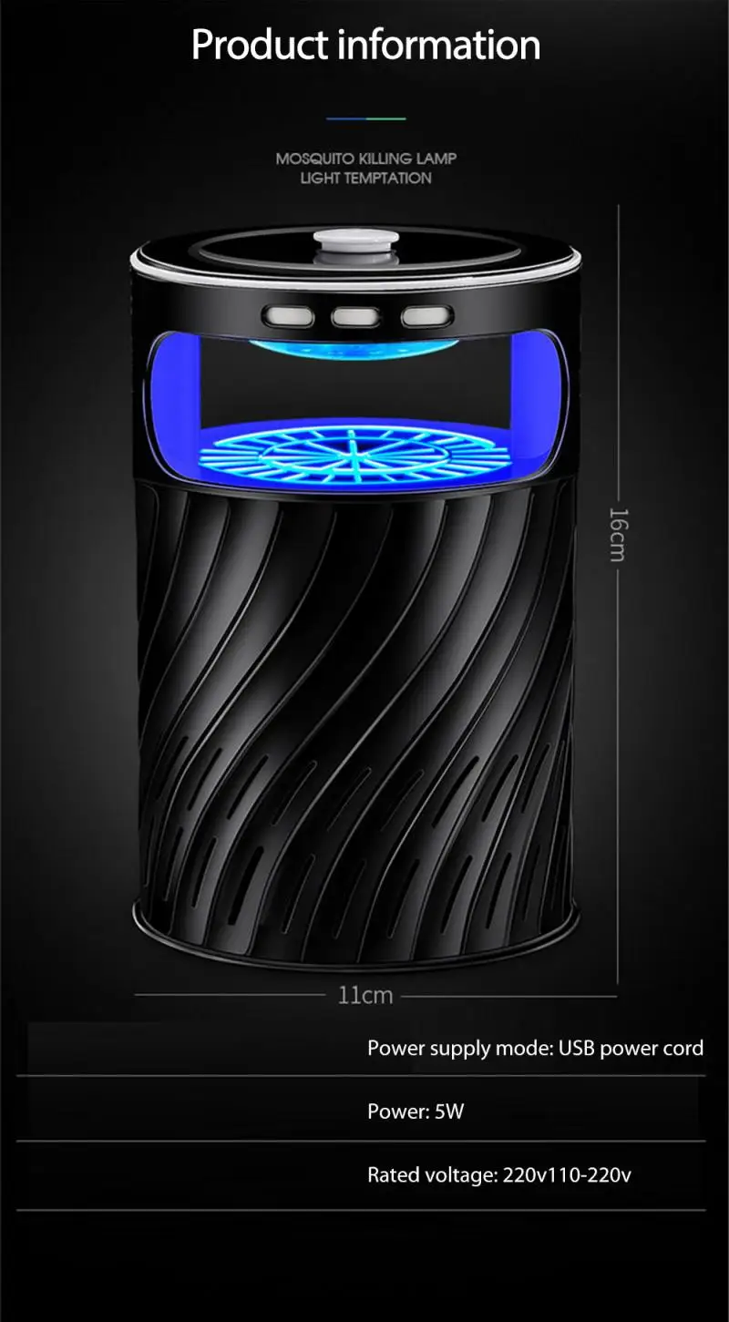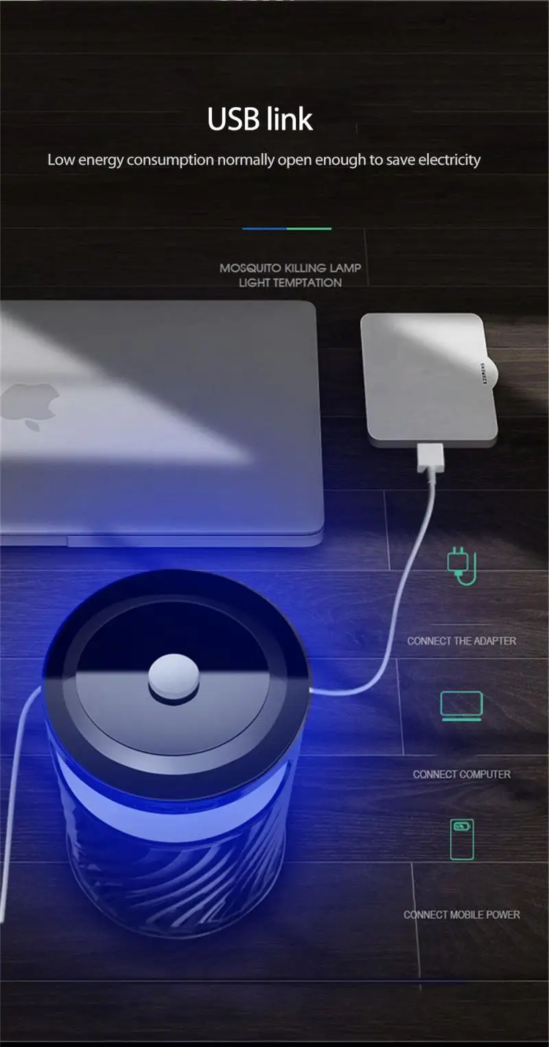 2. Источник питания USB: лампа-убийца комаров питается от usb-интерфейса, совместима с большинством зарядных устройств и зарядных устройств на мобильный телефон.