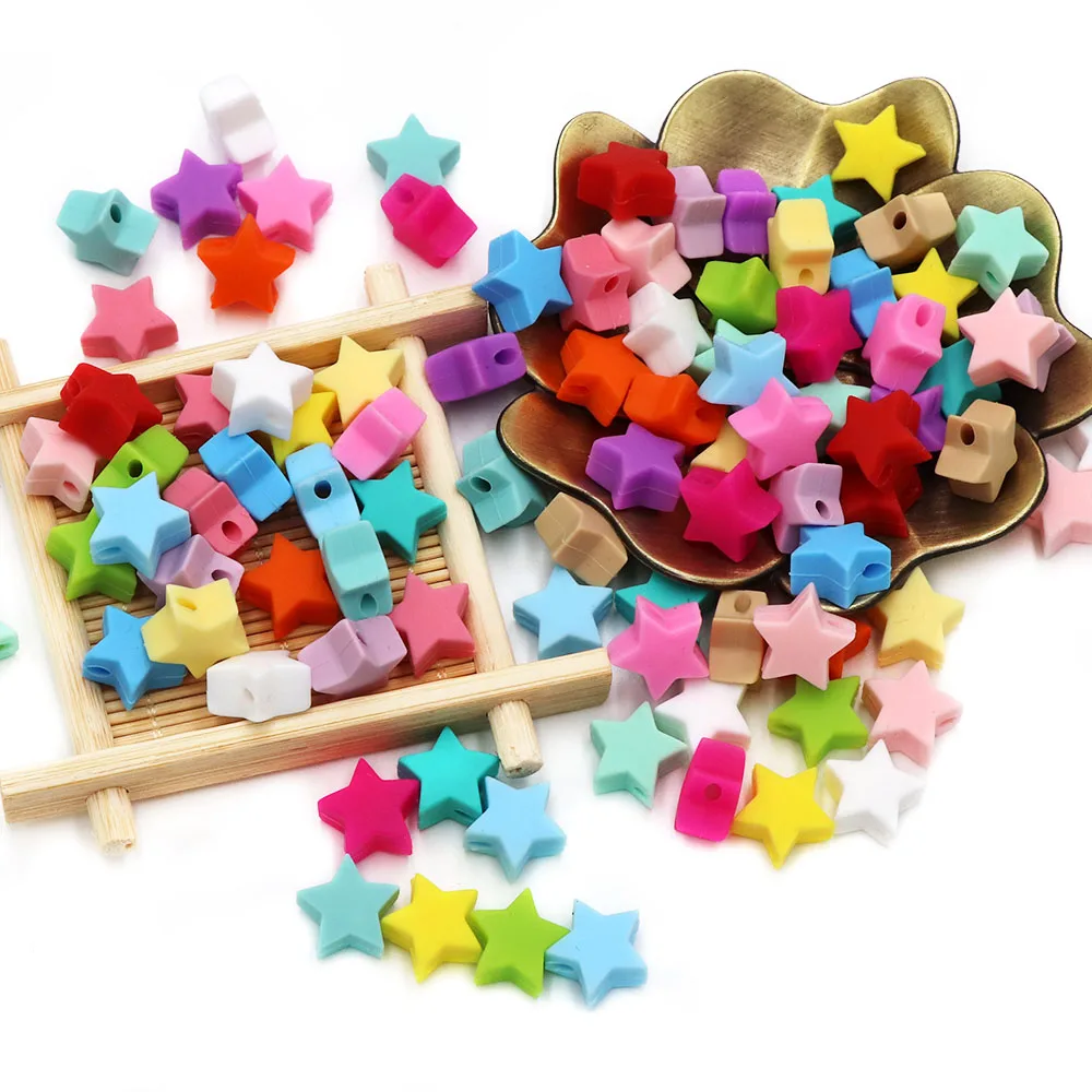 BOBO.BOX, 10 шт., силиконовые бусины в виде звезд, BPA бесплатно, Детские бусины для прорезывания зубов, жевательные Силиконовые Прорезыватели, игрушка, соска, цепочка, прорезыватель, сделай сам, ожерелье