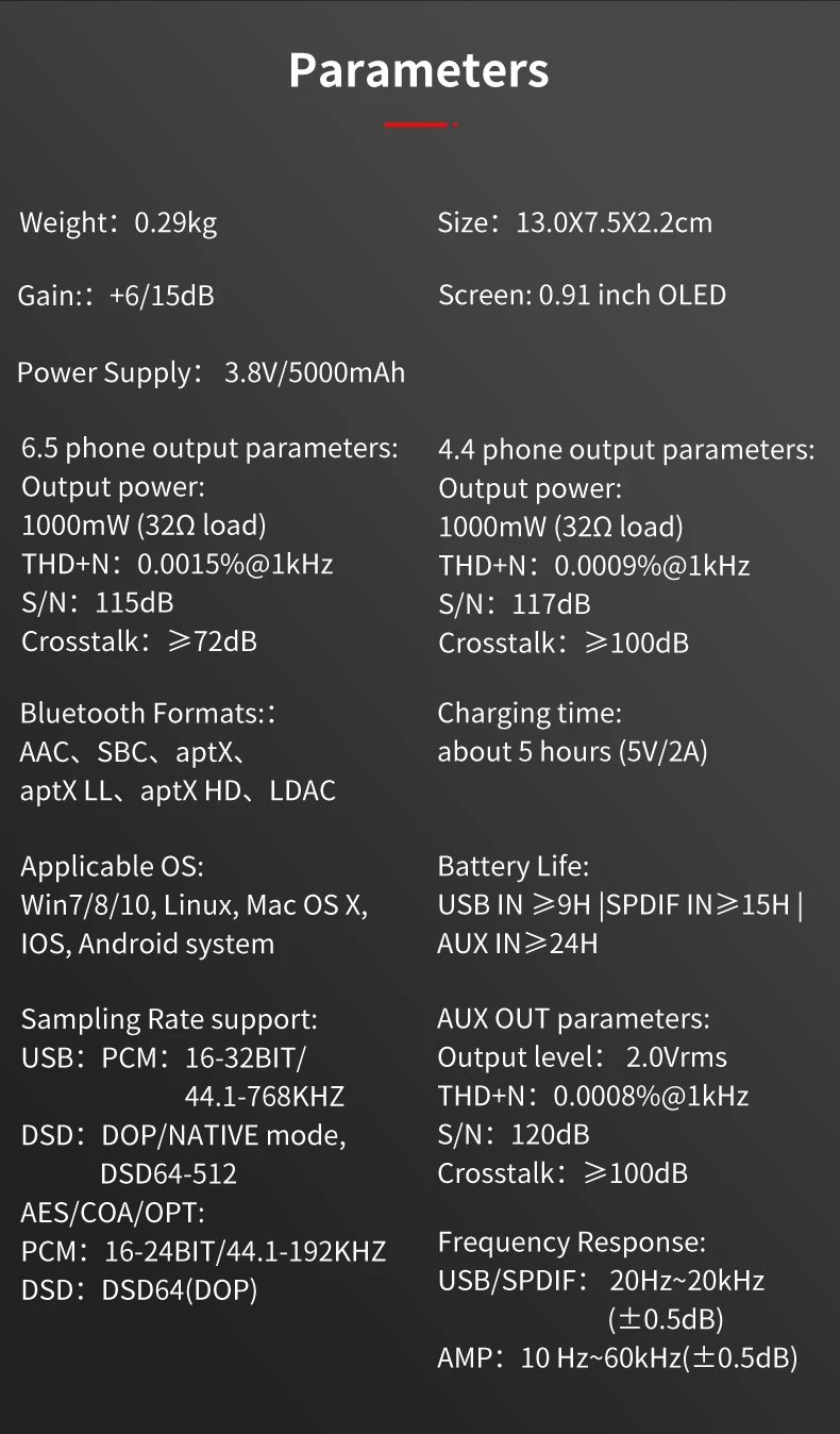 USB/SPDIF: 20 Гц ~ 20 кГц (± 0,5 дБ)