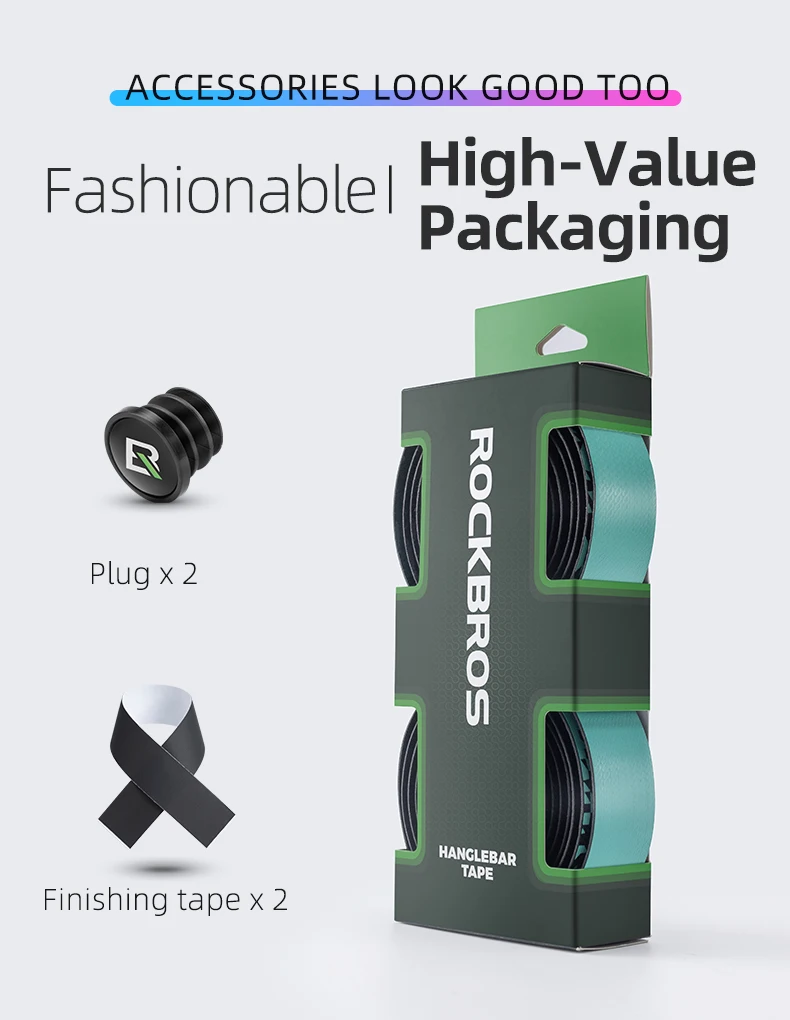 Бренд: ROCKBROS Материал: ПУ + Эва Комплектующие: заглушка х2, отделочная лента х2 Вес: около 95 г (с упаковкой) Размер: около 3 см в ширину и 210 см в длину