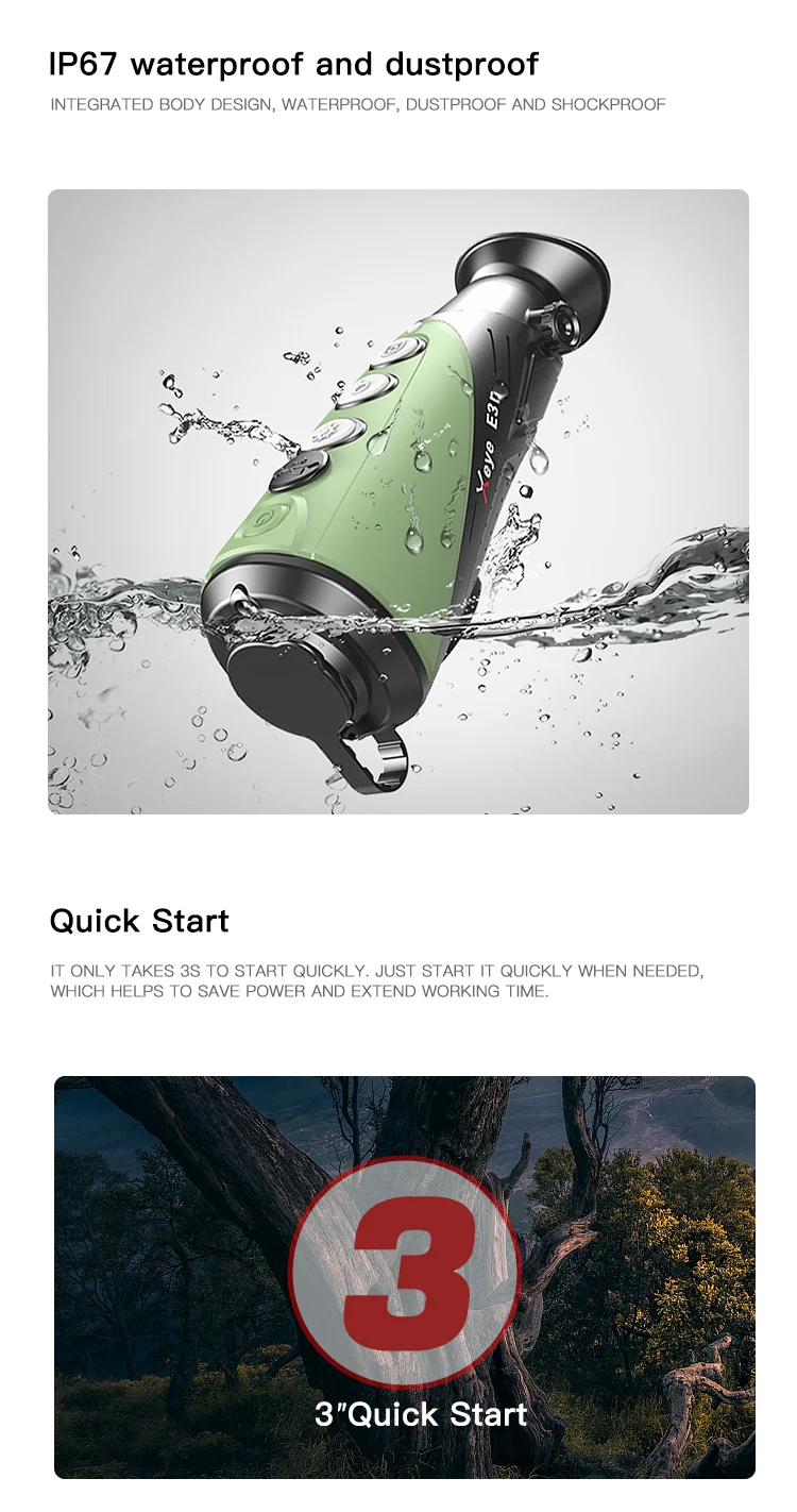 Компактный и элегантный дизайн и простые эксплуатационные функции делают Монокуляр для тепловизирования серии Eye идеальным инструментом наблюдения за мишенью в темноте.