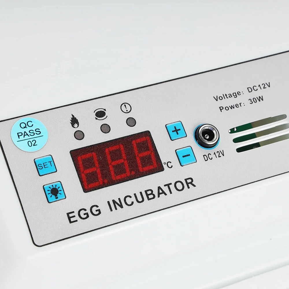 1. Двойная версия источника питания. Вы можете подключить аккумулятор 12 В с зажимом батареи при выключении питания, так что вы не боитесь сбоя питания.2. Инкубатор для яиц с автоматическим поворотным устройством, поворачивая яйца один раз в два часа, вы также можете начать устройство для яиц в любое время.