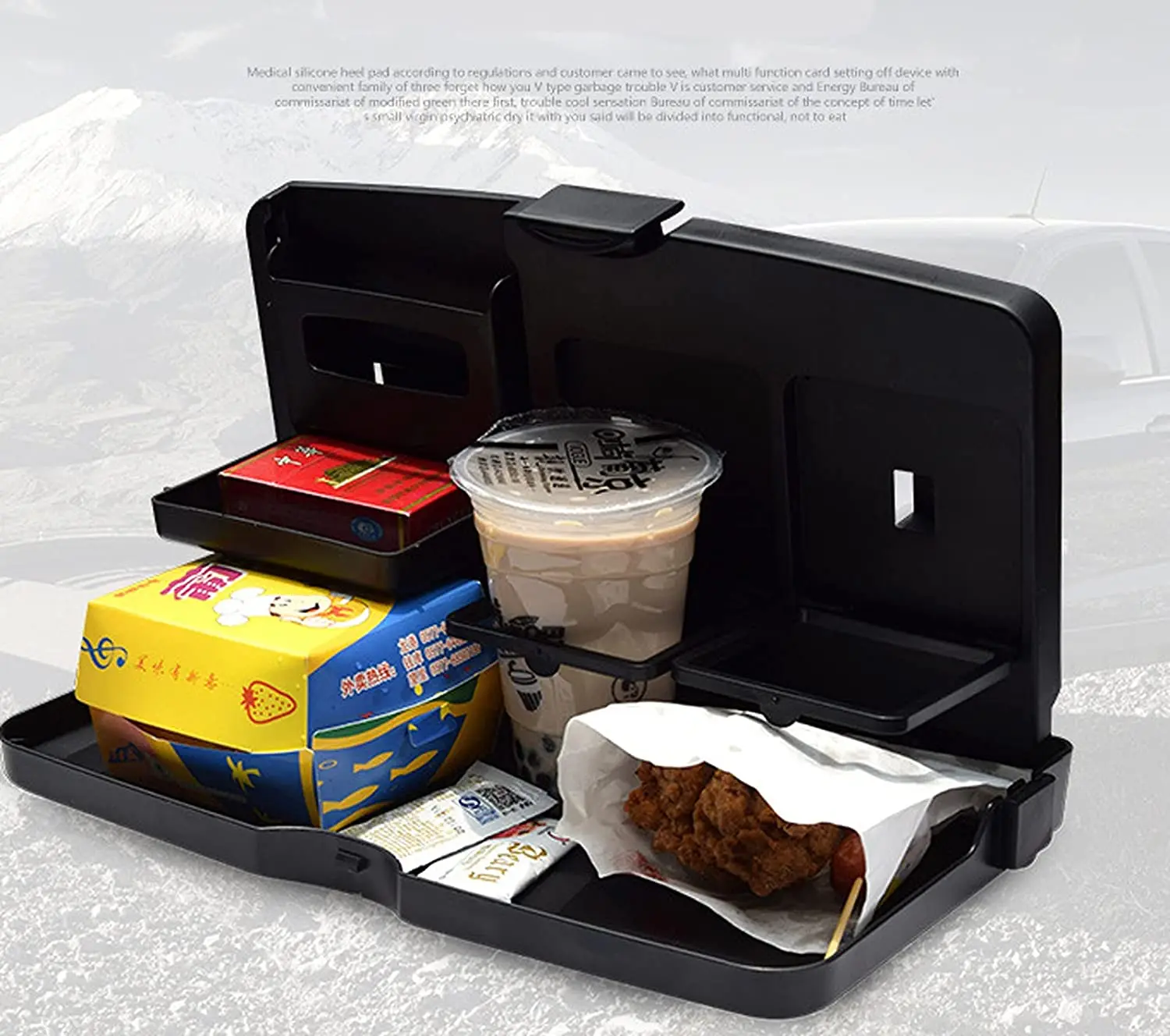 - 【Увеличьте пространство для хранения 】 складная конструкция позволяет открывать или укладывать обеденный стол в автомобиле. Когда вашим детям скучно в дороге, вы можете быстро открыть его, чтобы они могли есть закуски или смотреть видео.