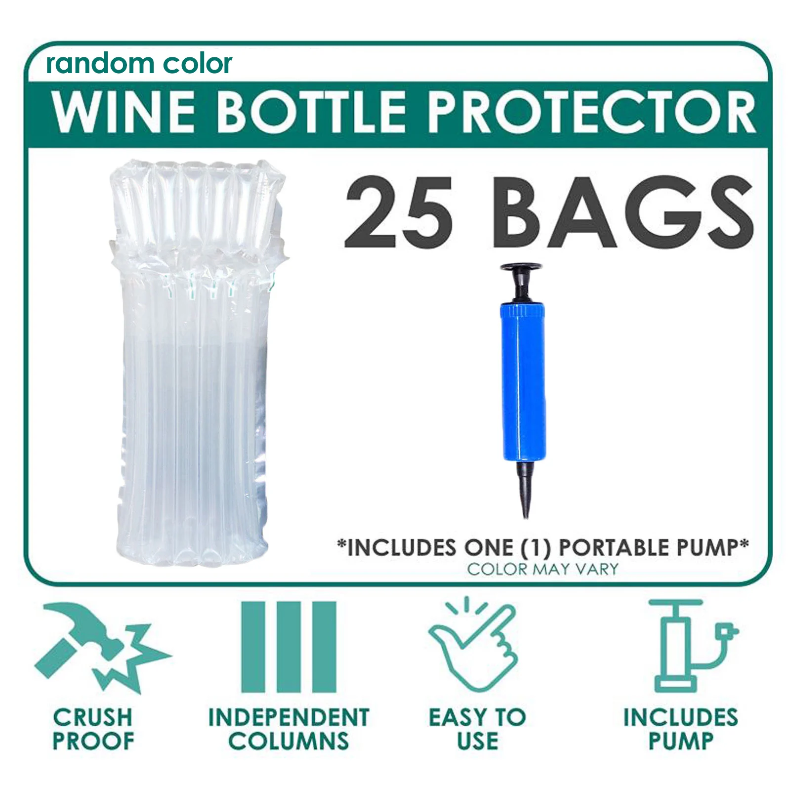 4、Just the Right Size: The size of the bottle protector bag is about 9 inches x 16 inches when deflated, and about 5 inches x 13 inches when iated. The bags are packed in frustration-free bulk packaging, while the free hand-held air pumps vary in color. A cost-effective way to protect valuables.