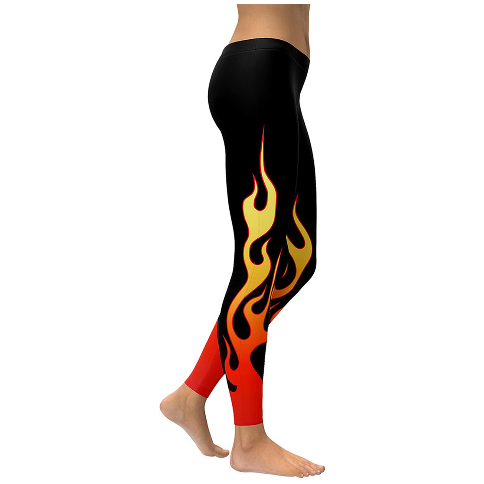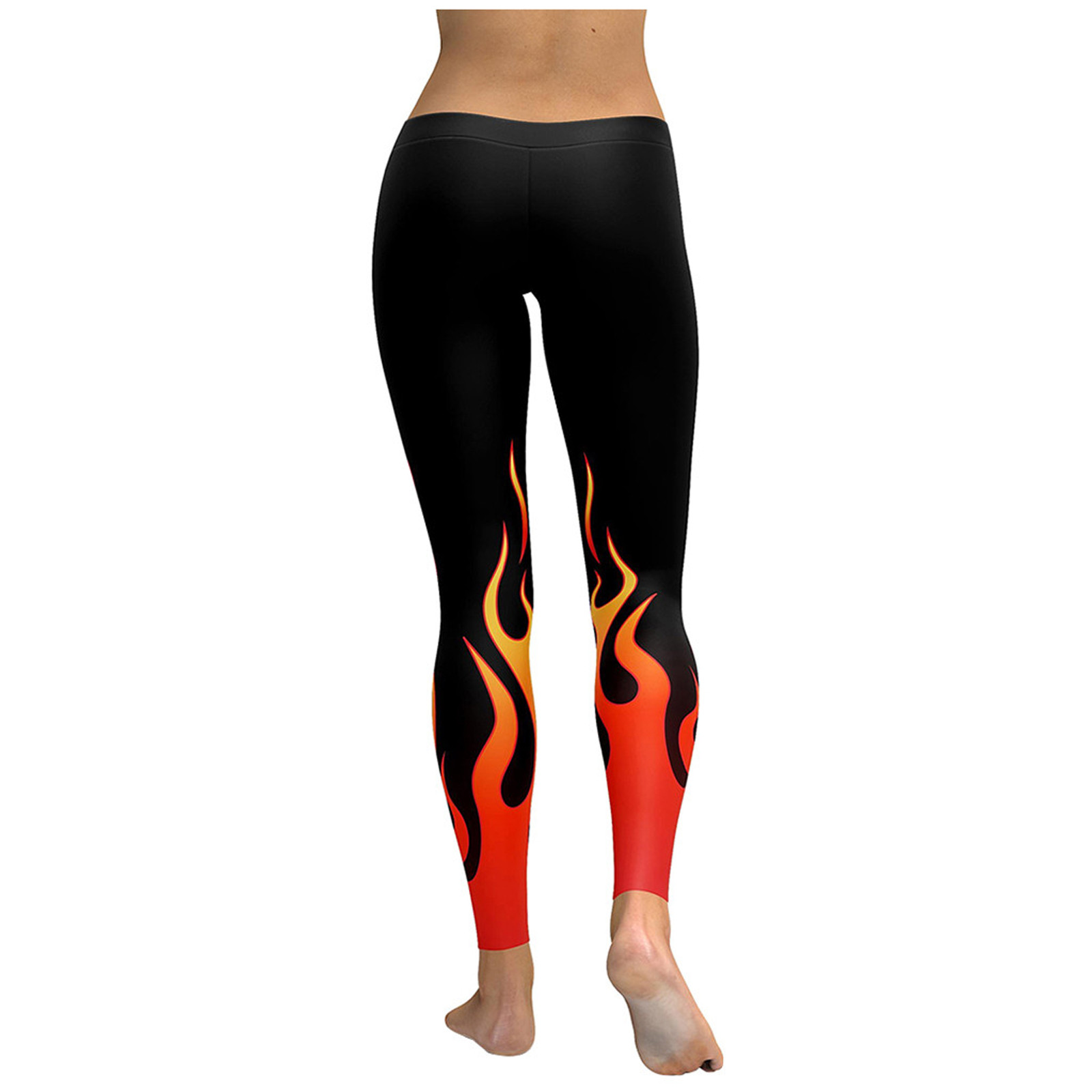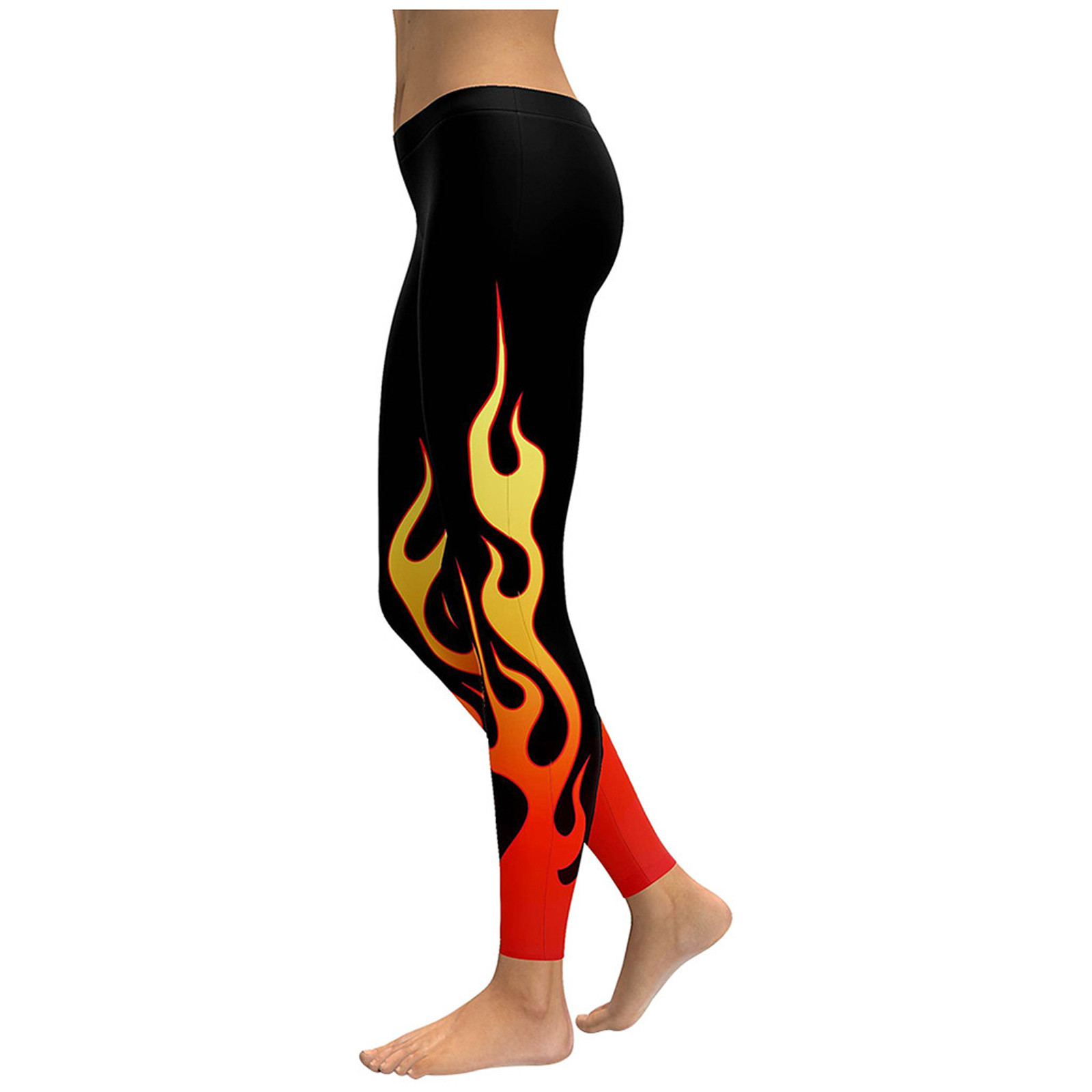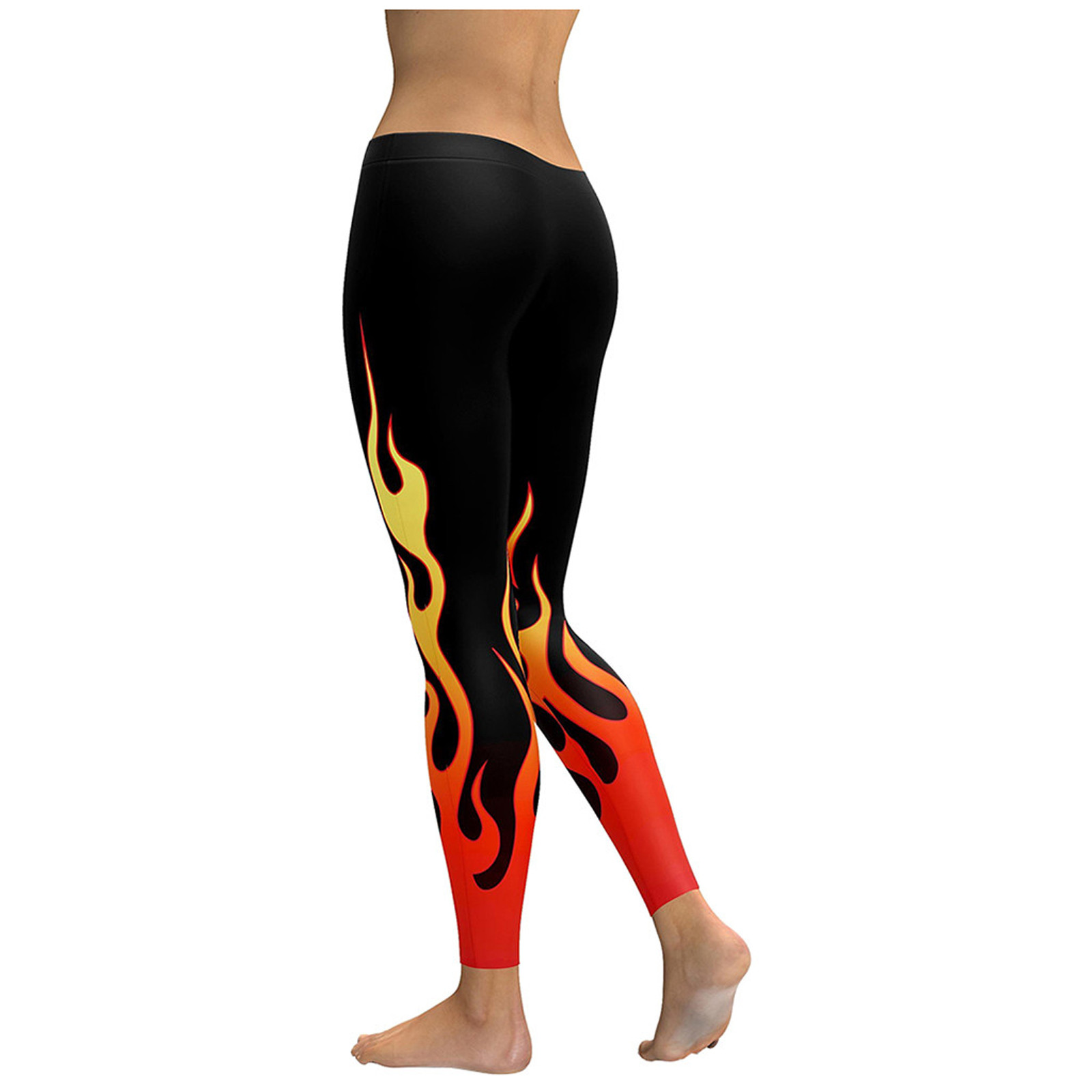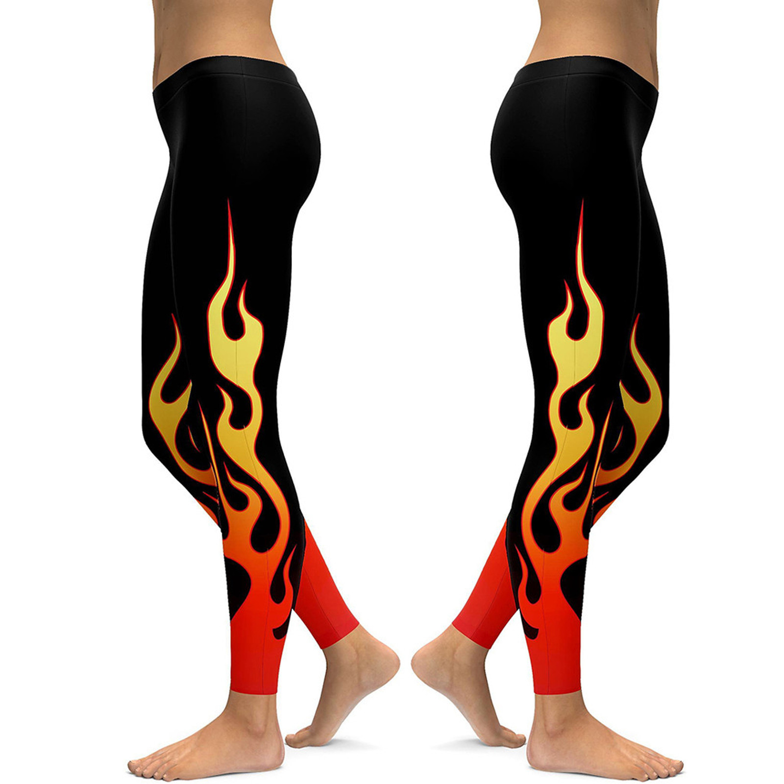 Fashion Women Yoga Running Pant High Waist Stretch Flame Printing Leggings