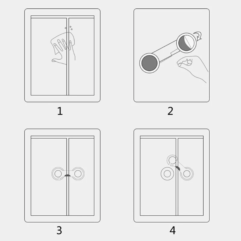 Легко установить, сначала откройте защитный замок и снимите подложку с клейкой прокладки, затем Прикрепите прокладки к двери шкафа соответственно; Когда вам нужно открыть шкаф, просто нажмите на ленту, затем вы откроете дверь, как вы хотите