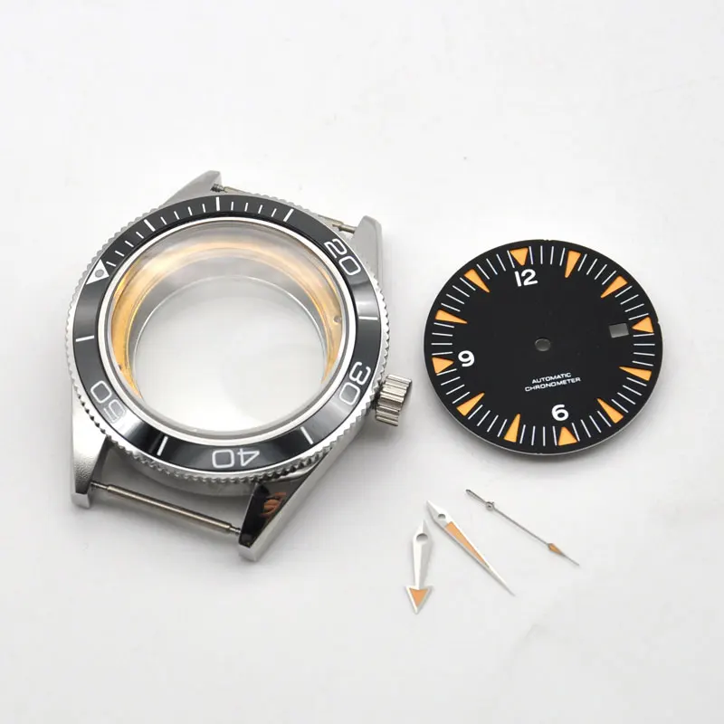 В комплекте: чехол 41 мм, задняя часть, корона, крепление для подушки, резиновое уплотнение, 2 пружинных стержня Чехол диаметр: 41 мм без короны measurd Чехол Толщина: 12 мм Чехол Материал: Твердый 316L стальной чехол Ободок: черный керамический ободок Водонепроницаемость: 10 АТМ Размер наконечника: 20 мм Стекло: сапфировое стекло Подходящий циферблат: 30,2-31,3 мм Цветовые Циферблаты: как показано Размер циферблата: 31 мм Размер рук: 13 мм x 14 мм x 9 мм (все измерения от центра отверстия до конца) Механическая Посадка: NH35,36 ETA 2836, DG2813 / 3804, Miyota 8215 / 821A серия
