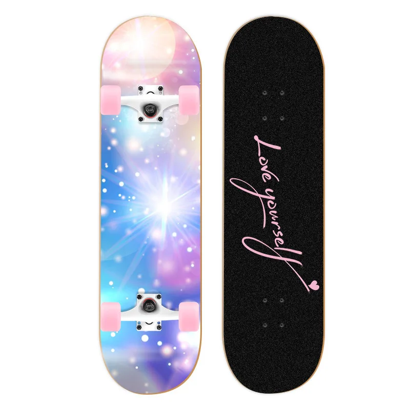 Отзывы о Новый розовый скейтборд серии 80*20 см двойной вертикальный четырехколесный