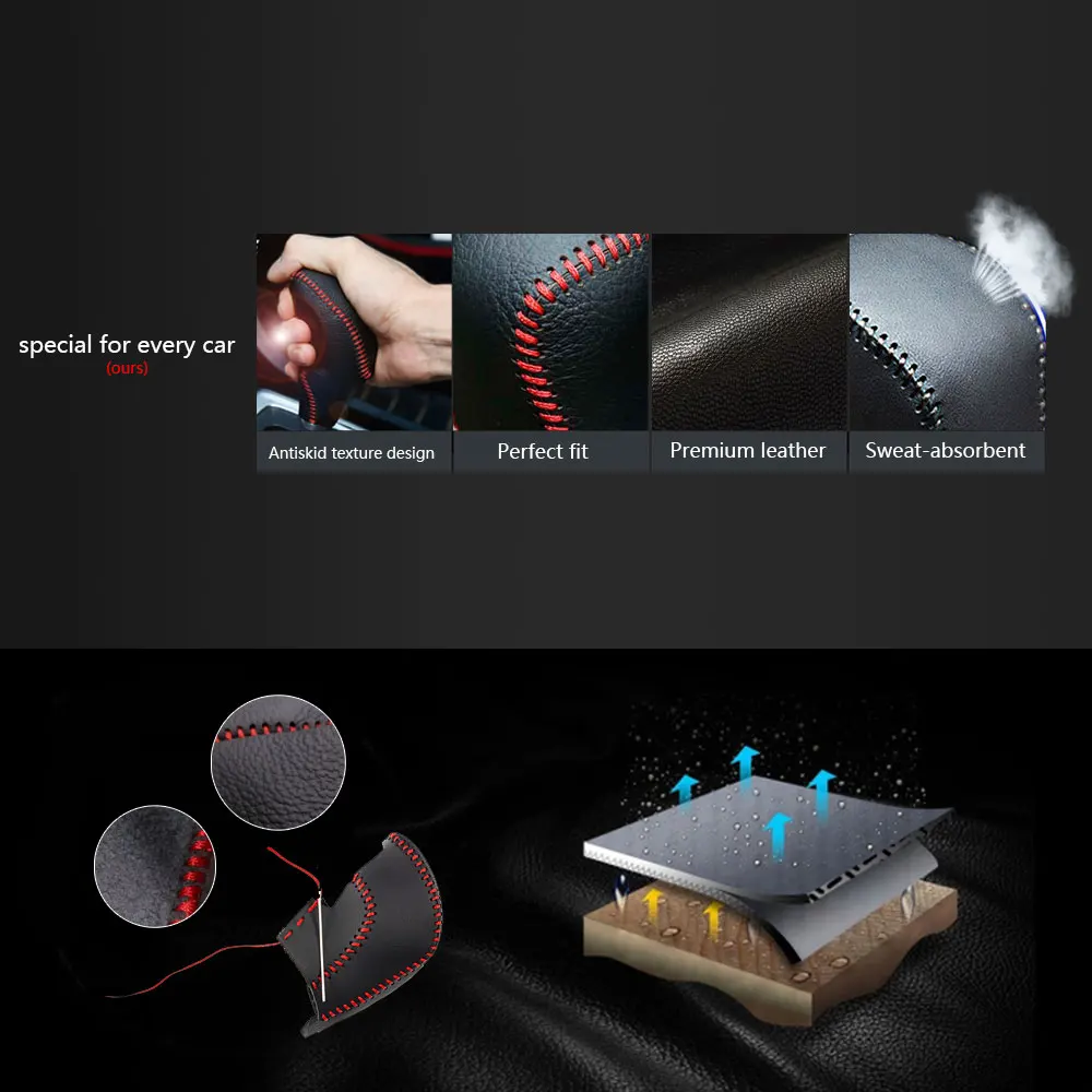 1) Превосходный мягкий верхний слой из кожи крепкий на ощупь и мгновенно улучшает эксплуатационные ощущения автомобиля.