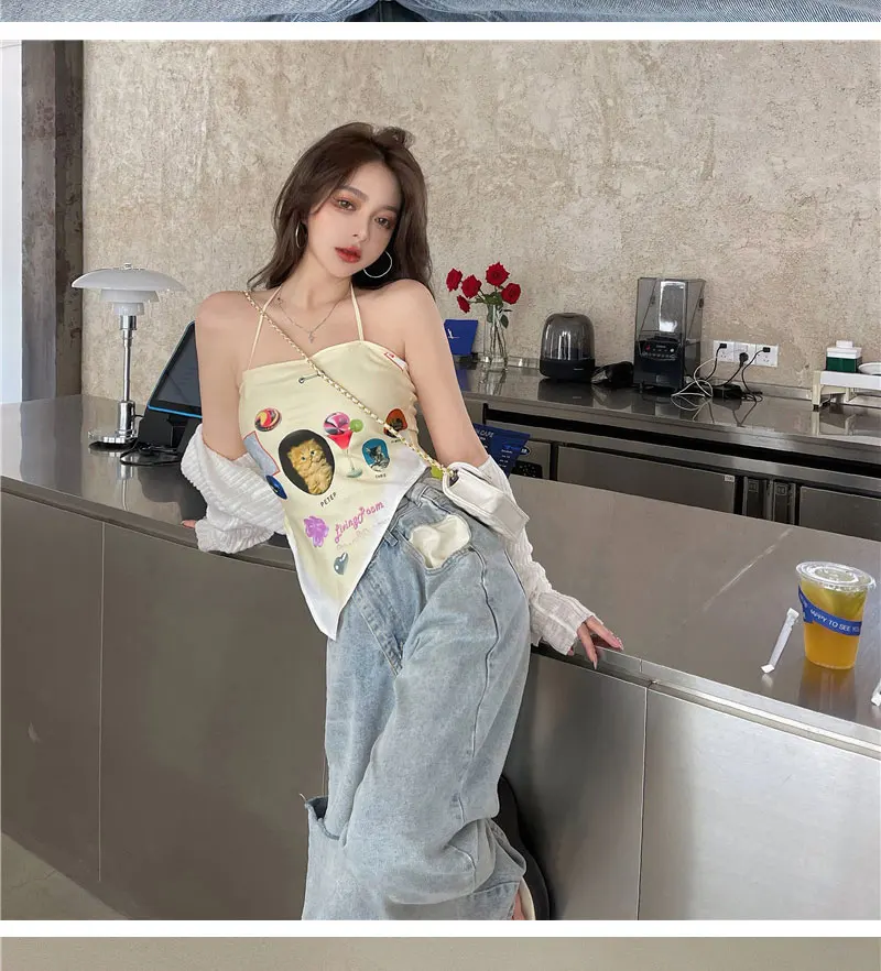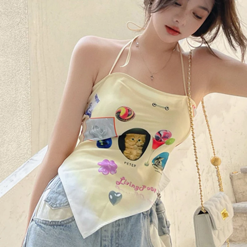 Отзывы о Майка женская на шнуровке Асимметричный топ-труба с лямкой шее уличная одежда