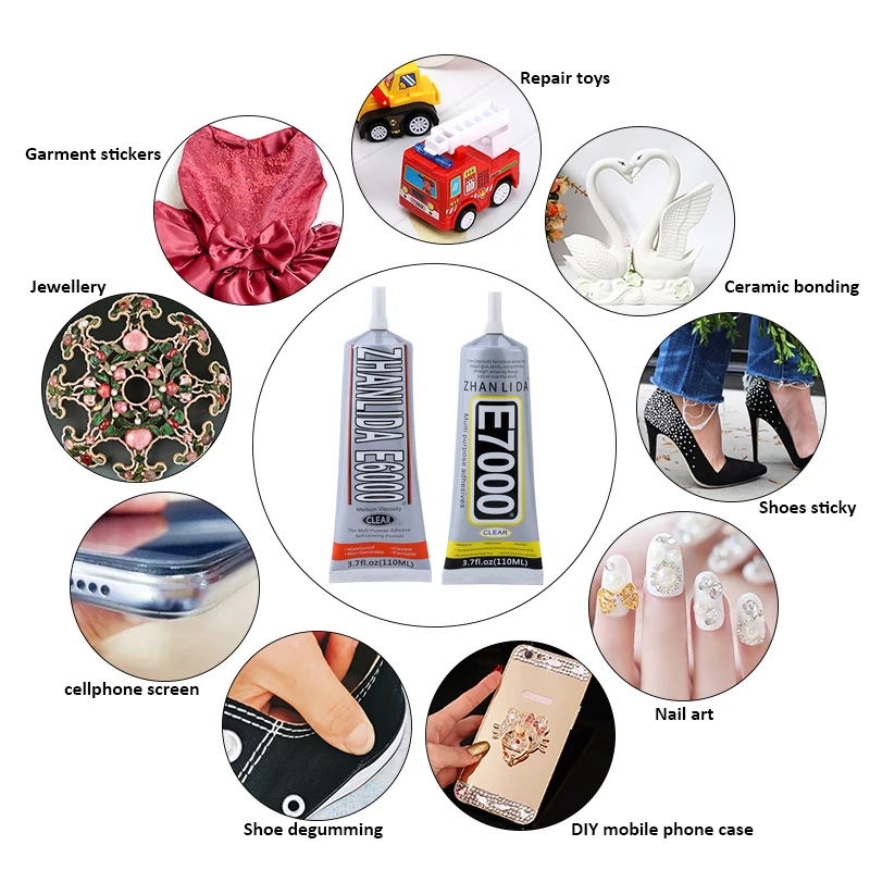 ❤E7000 :( клеи можно использовать для вставки большего количества материалов. Подходит для металла, стекла, керамики, камня, бамбука, дерева, ткани, кожи, PE, PP, PVC, ABS, нейлона, губки, пленки, ткани, электронных компонентов, пластмасс, резина, волокно, бумага, мобильный телефон, ЖК-экран, средняя рамка, рамка, кронштейн. )