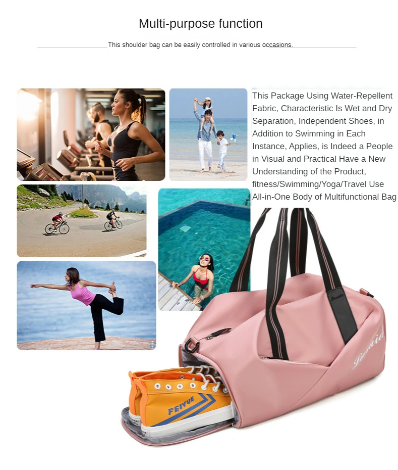 Спортивная сумка для фитнеса Женская сухая мокрая разделительная обувь тренировочная сумка для йоги большая емкость ручной Багаж для короткой дистанции дорожная сумка