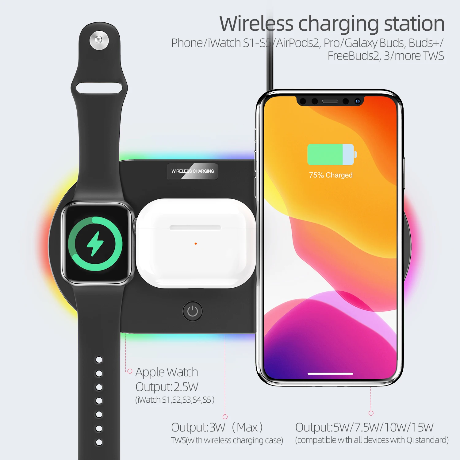 Отзывы о Беспроводные зарядные устройства 4 в 1 для смартфонов умные браслеты BlueTooth