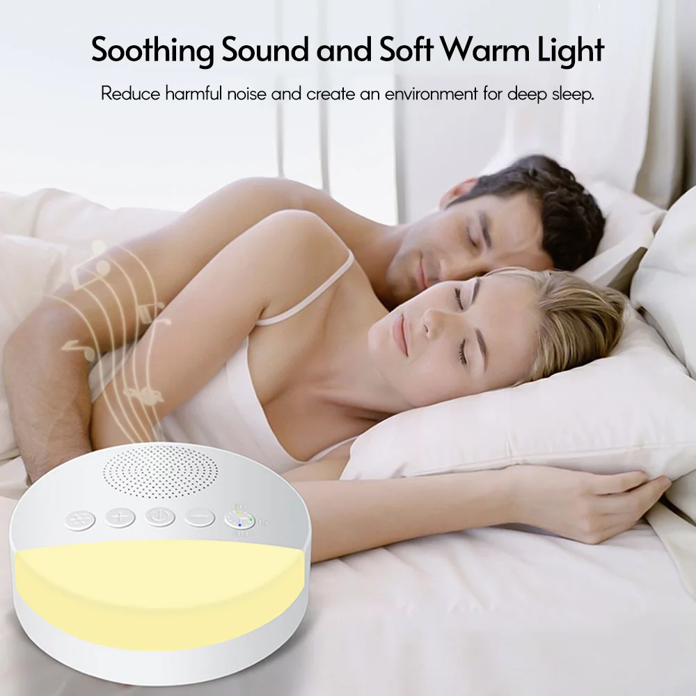 Встроенный 6 успокаивающих звуков на выбор: дождь, лес, волны, поток, Колыбельная и белый шум, каждый вид может значительно помочь сну.