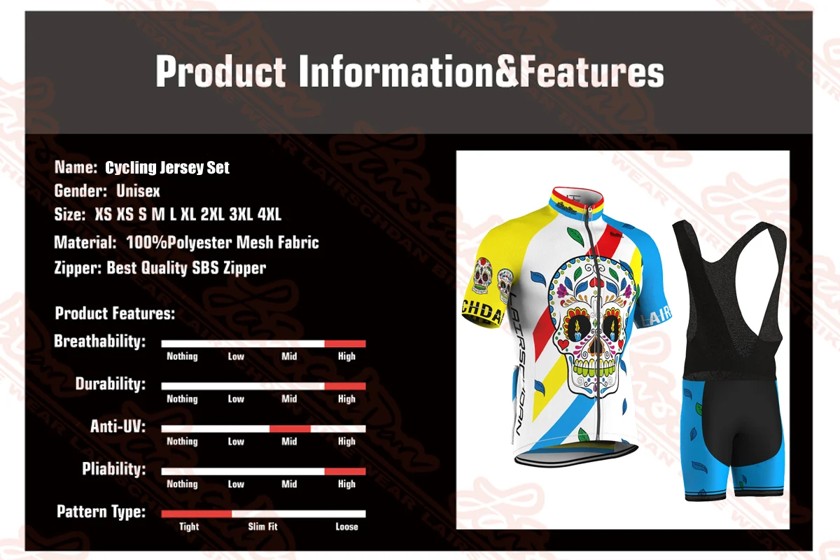 Отзывы о LairschDan Череп Велоспорт Джерси комплект 2021 Мужская полный mtb велосипедная одежда