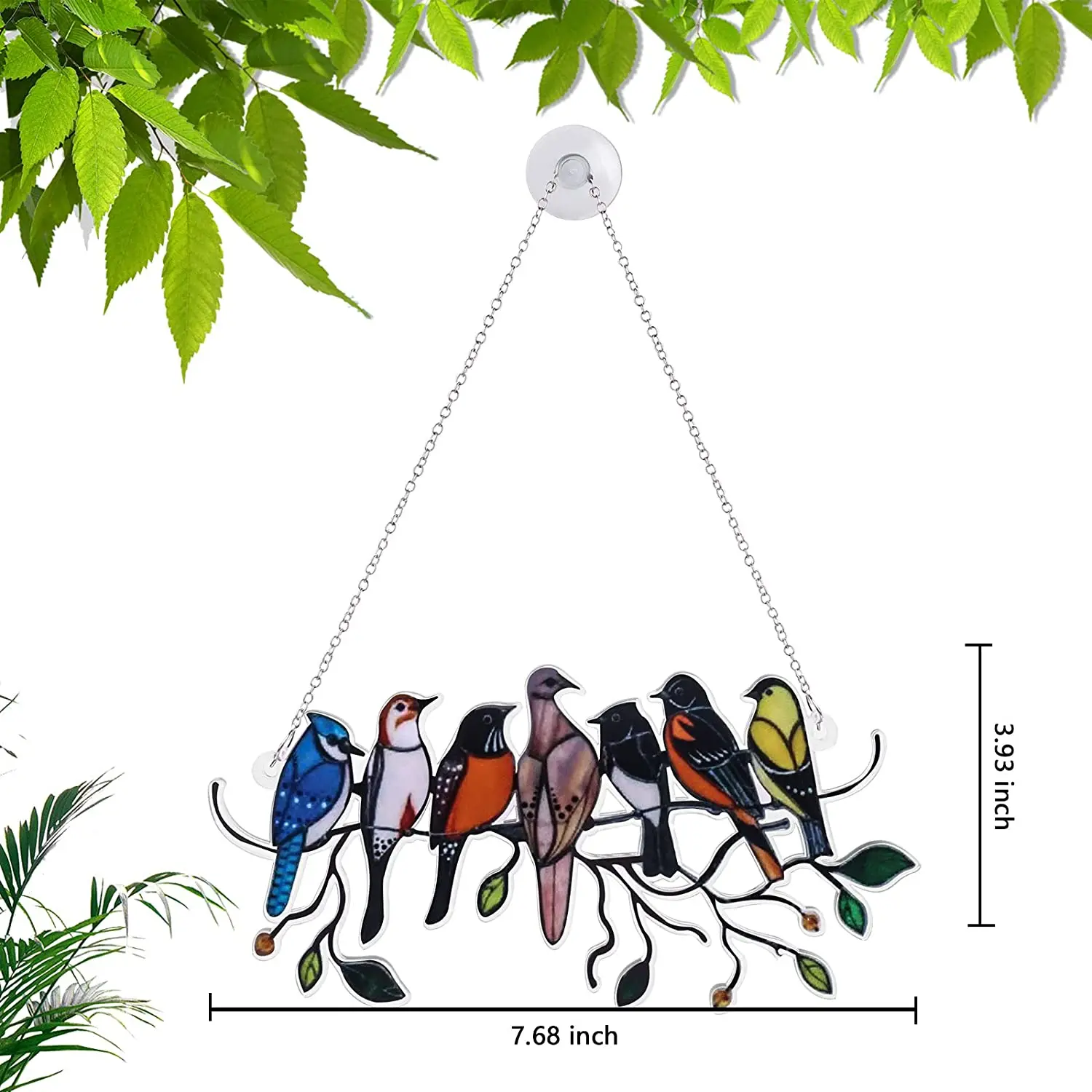 Милая витражная птица, стеклянные подвески, акриловые панели, подвесной декор для Дня матери, подарок для ребенка, украшения для спальни, ветряные колокольчики