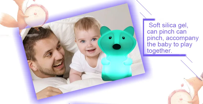 Лиса светодиодный Ночной светильник сенсорный Сенсор 9 Цвета мультфильм Силиконовые настольная лампа Батарея приведенный в действие прикроватная тумбочка для спальни, подарок на Рождество, подарок для детей, подарок