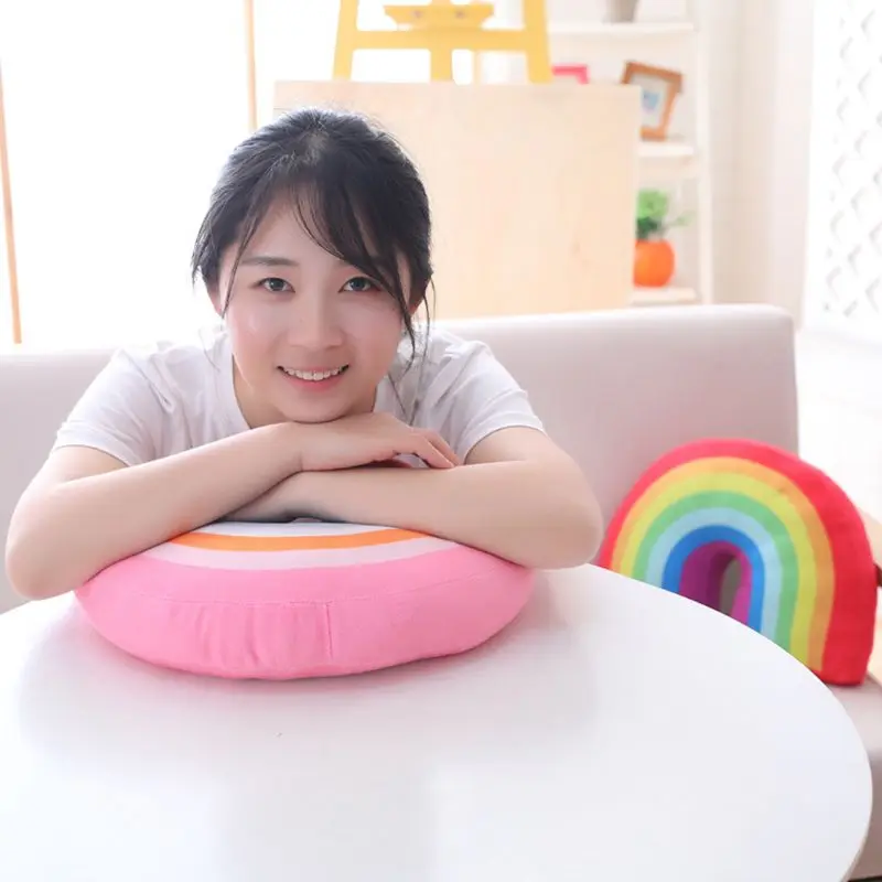 1. Радужная форма плюшевая подушка в трендовых мягких цветах.