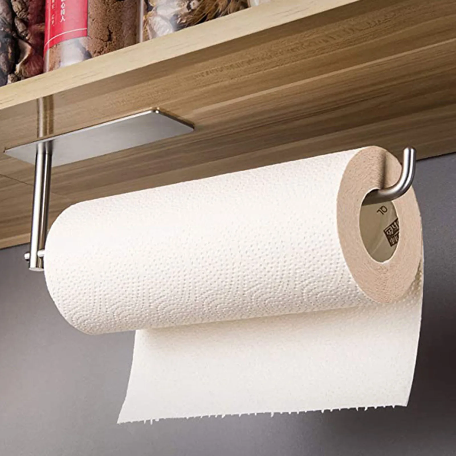Простота установки: Используйте держатель рулона бумаги для подвешивания, вам больше не нужно сверлить отверстия для фиксации винтов. Вы можете использовать его под шкафом, и вы можете организовать свою семейную жизнь лучше, чем традиционная стойка для бумажных полотенец.