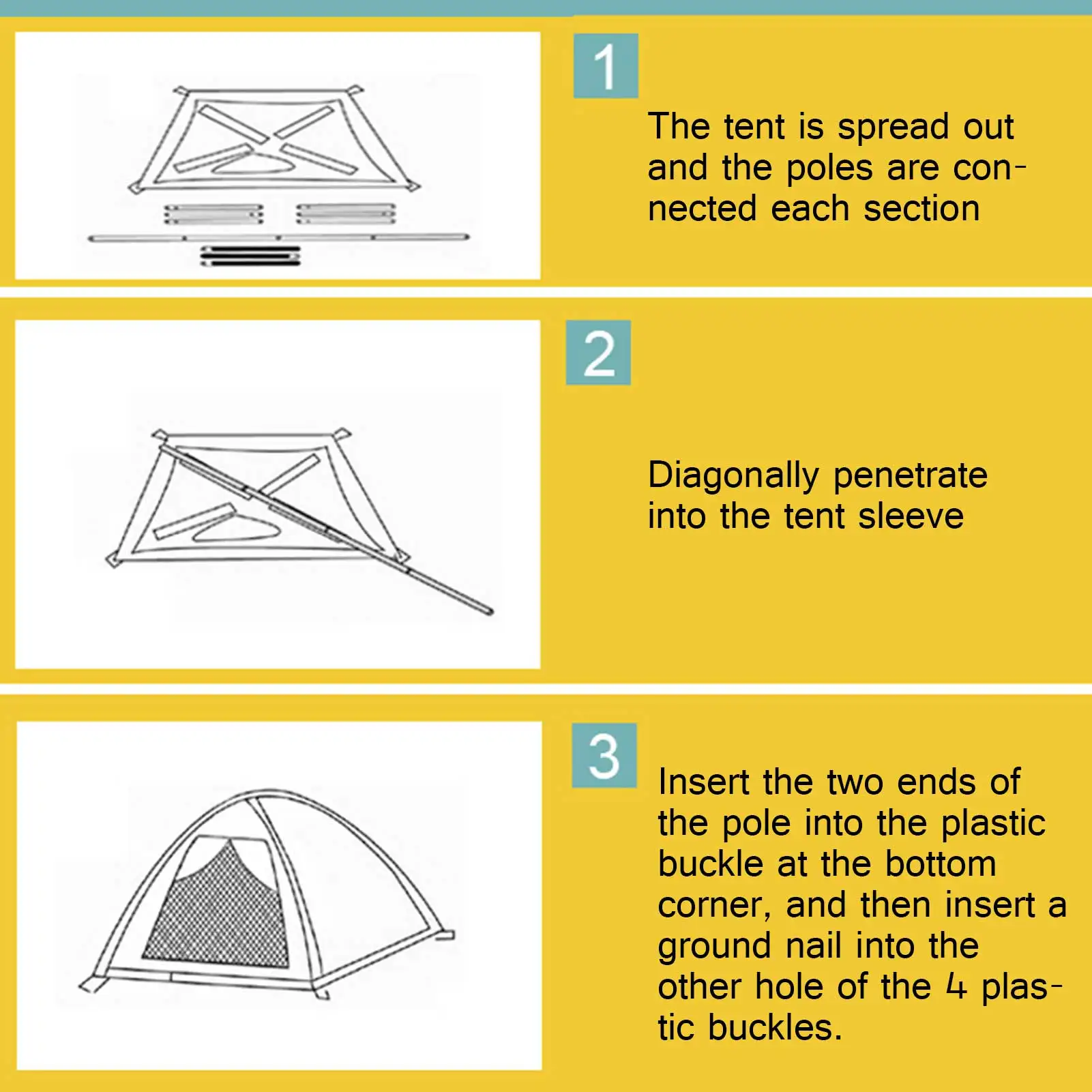 3. Легко носить с собой и собирать: Выдвижной Телескопический полюс удобен для компактной установки и хранения. Вы можете настроить палатку через несколько минут. После путешествия, вам нужно только положить компоненты палатки в сумку и легко упаковать и транспортировать его.