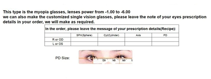 Изготовленный на заказ по рецепту, оставьте сообщение и укажите, какой двумя глазами градусов влево и вправо 0/-0,50/-0,75/-1,0/-1,25/-1,5/-1,75/-2,0/-2,25/-2,5/-2,75/3,0/3,25/3,5/3,75/4,0/6,0