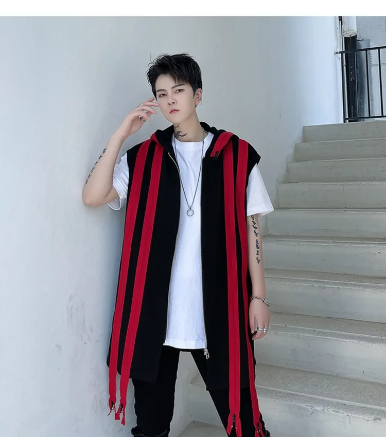 Отзывы о Длинный мужской жилет на молнии с капюшоном куртка без рукавов в стиле панк