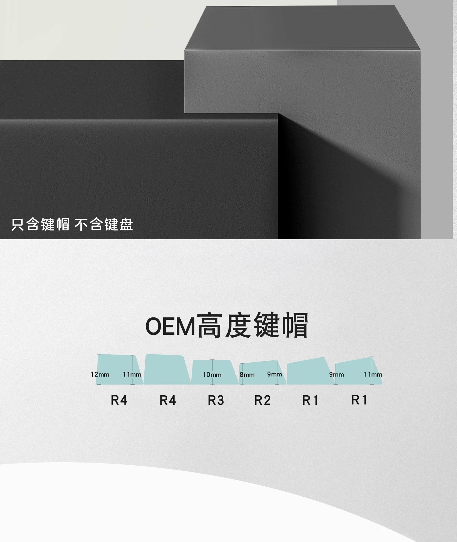 3. Колпачки для ключей OEM профиля, колпачок для ключей эргономичного дизайна со ступенчатой компоновкой, более удобный на ощупь.