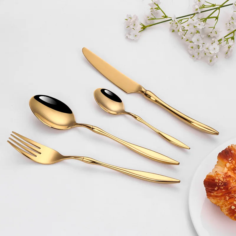 4 шт. золотые столовые приборы, нож для стейка, столовая посуда, свадебная посуда из нержавеющей стали, вилка, Западная столовая ложкаСтоловые приборы кухонная утварь