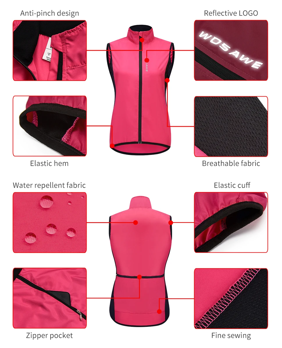 WOSAWEДля женщинВетровка с капюшоном для верховой езды, легкая ветрозащитная водонепроницаемая Спортивная быстросохнущая велосипедная майка