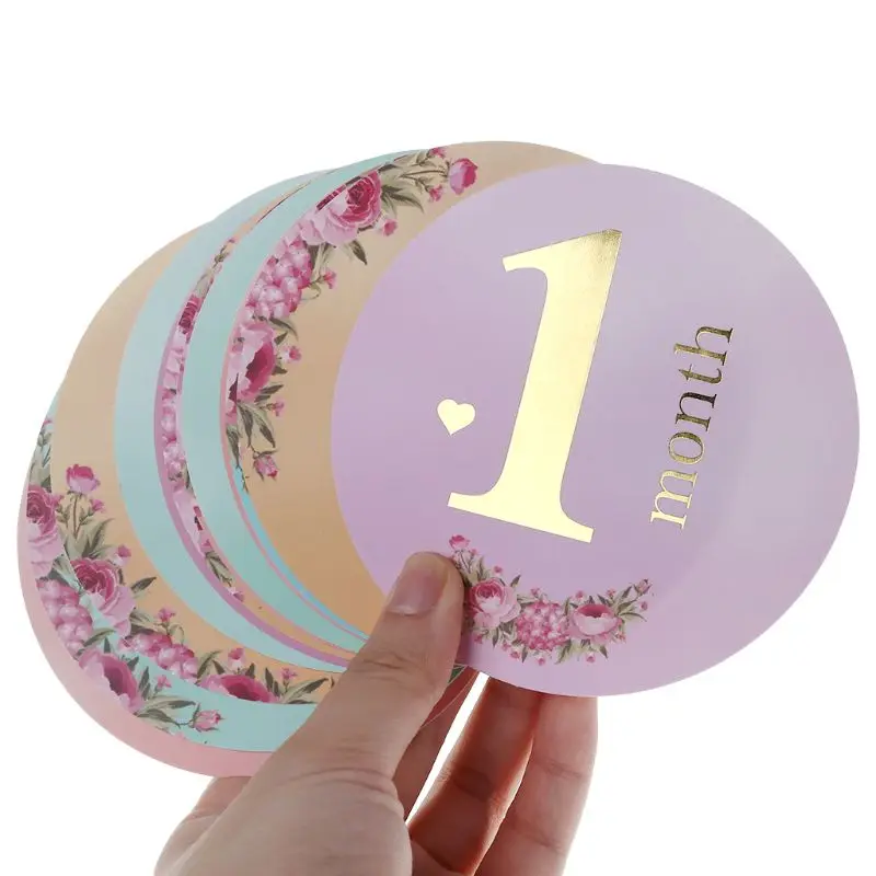1. Круглая и в форме галстука с наклейками в одном наборе, круглая форма-от первого месяца до двенадцатого месяца и в форме галстука-с вехами для роста ребенка, такими как первая стопа, Первый зуб, говорить и т. Д.