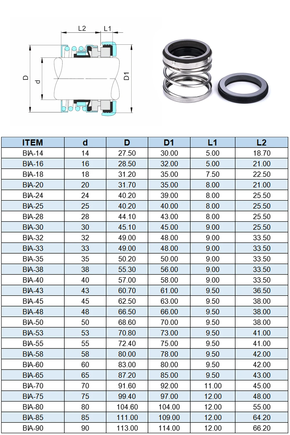 BIA-18 резиновые уплотнения 18 мм заменить на BIA механическое уплотнение CA-CE-NBR, CA-SIC-V, SIC-SIC-V, TC-TC-V
