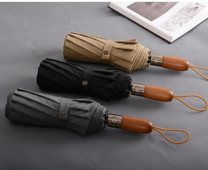 Отзывы о Зонт двойной автоматический мужской деловой 3 сложения деревянная ручка | Дом и