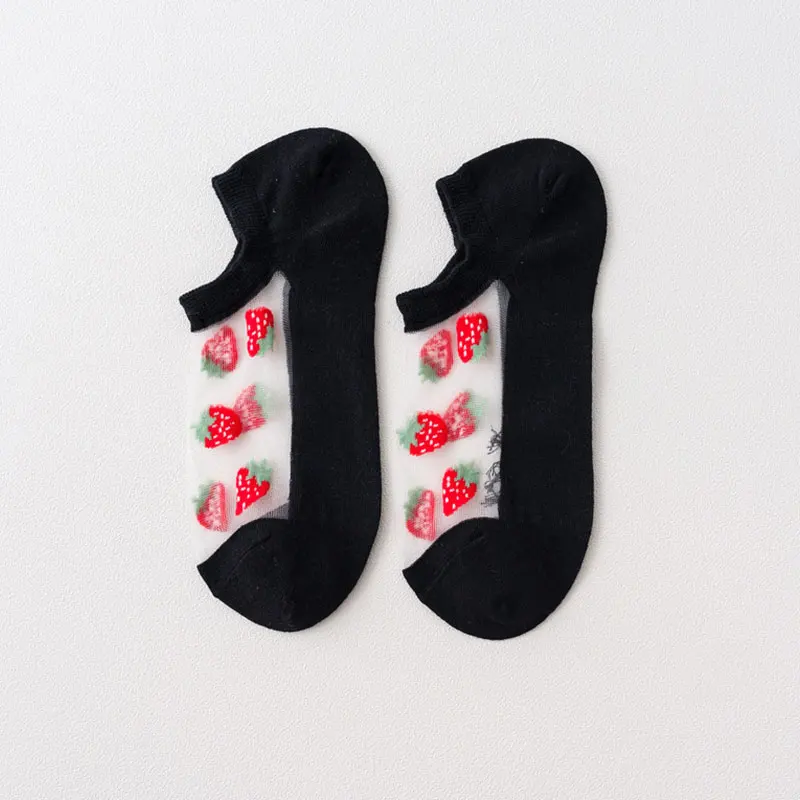 Отзывы о Носки женские прозрачные сетчатые тонкие хлопковые носки-невидимки с принтом