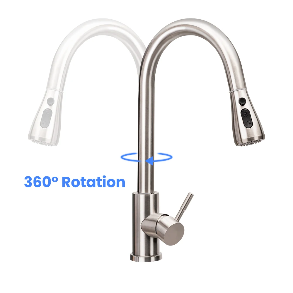 Отзывы о Матовый никелевый кран для кухонной раковины выдвижной Поворотный на 360 градусов