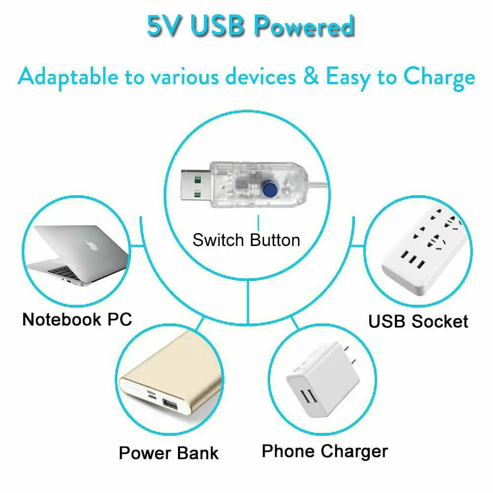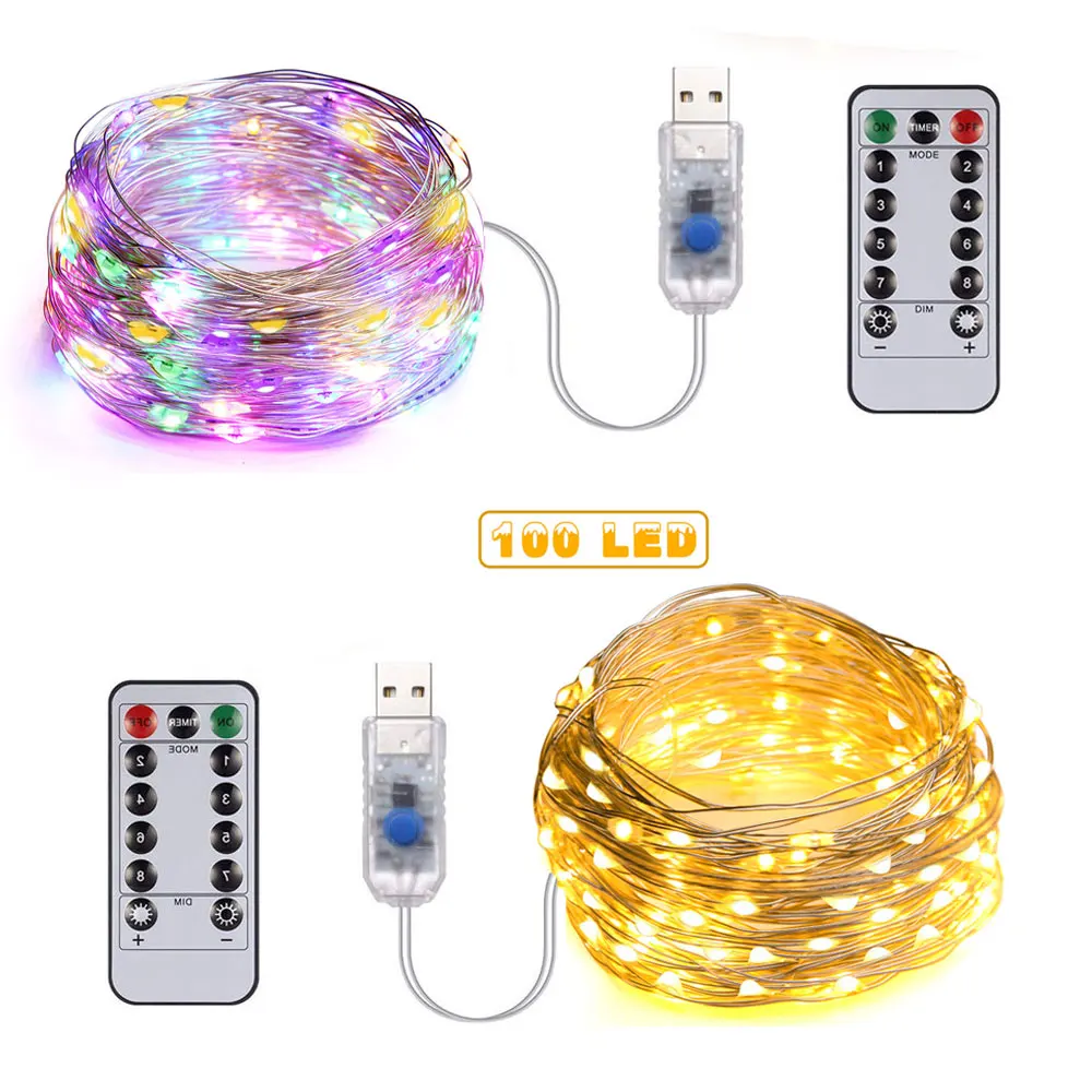 100 светодиодный 10 м Сказочный струнный светильник s 5V USB звездный светильник водонепроницаемый Медный Серебряный провод декоративный струнный светильник s с пультом дистанционного управления