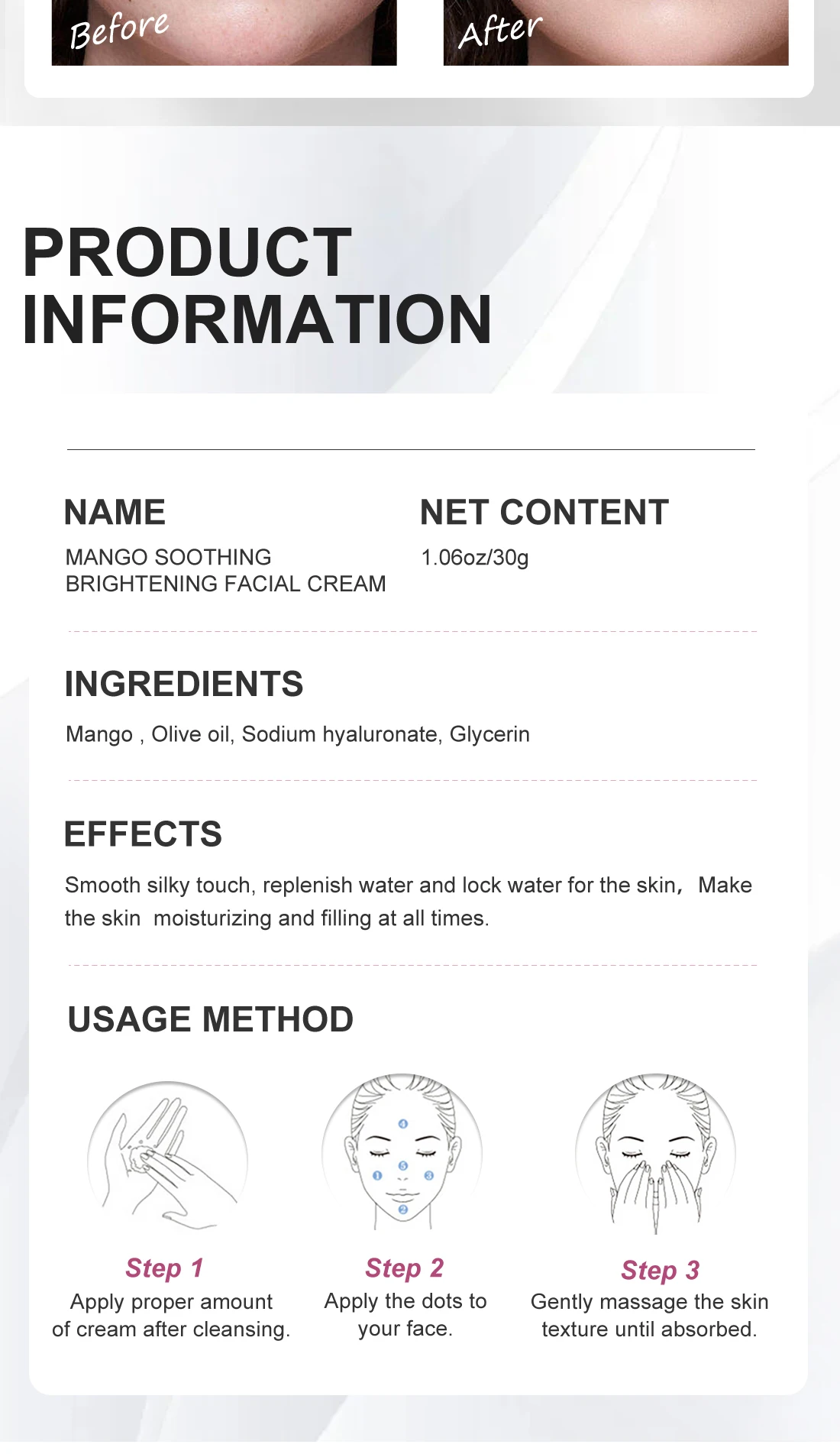 Название: успокаивающий и увлажняющий крем для лица с манго