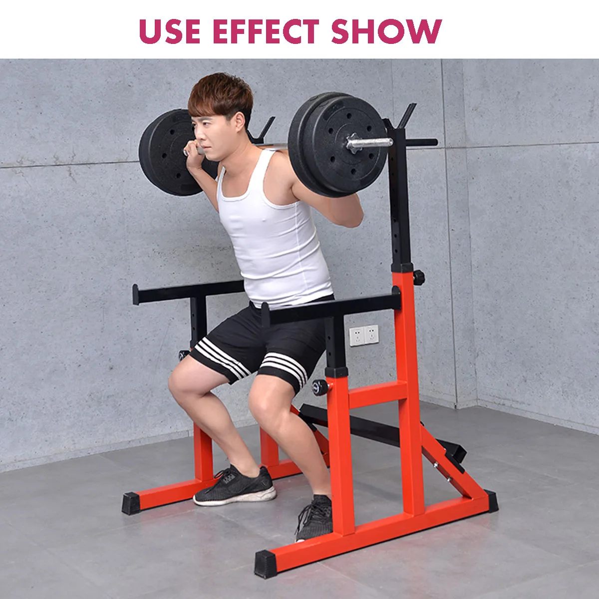 Этот Регулируемый приседающий стенд изготовлен из высококачественной стали, грузоподъемность до 551LBs. Может обеспечить максимальную безопасность.