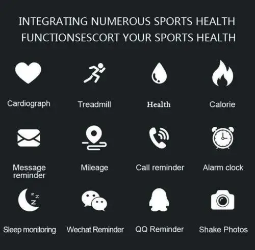 * Дополнительные функции: Найдите браслет, напоминание о будильнике, удаленную камеру, поднимите руку, чтобы сделать ярче,Управление музыкой,Погода